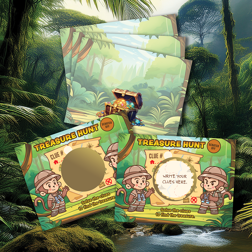 Jungle Treasure Map Scavenger Hunt Scratch Off Cards DIY Make Your Own 20 Pk