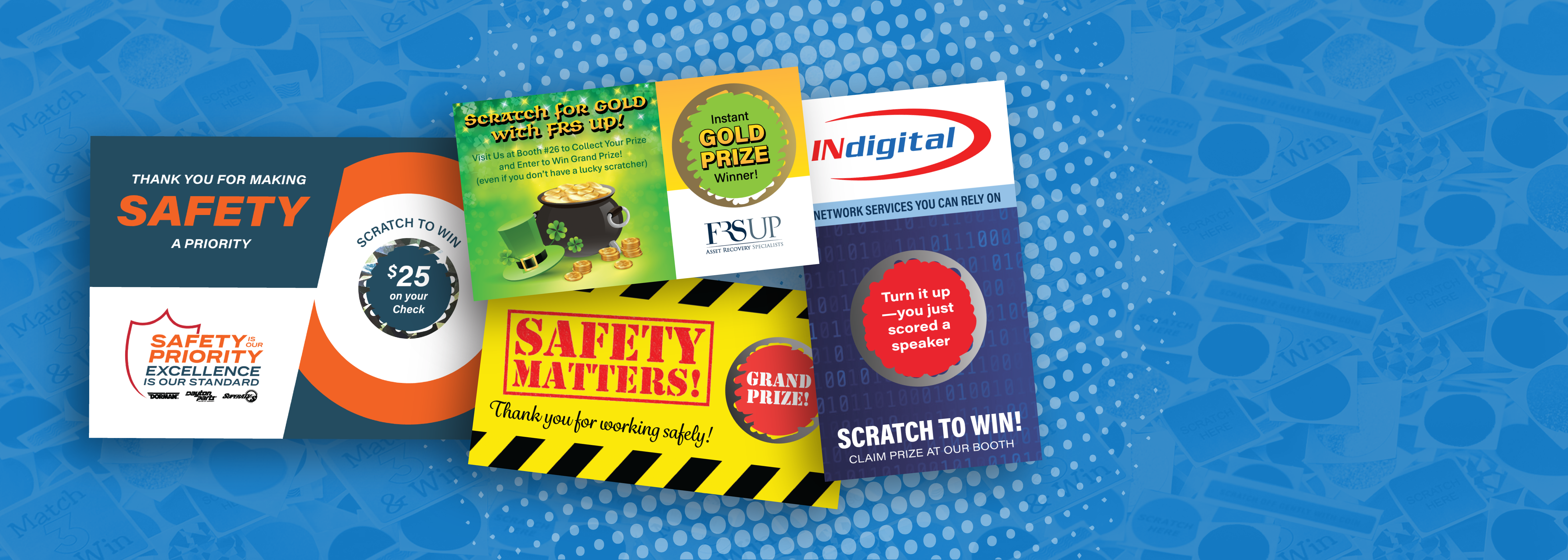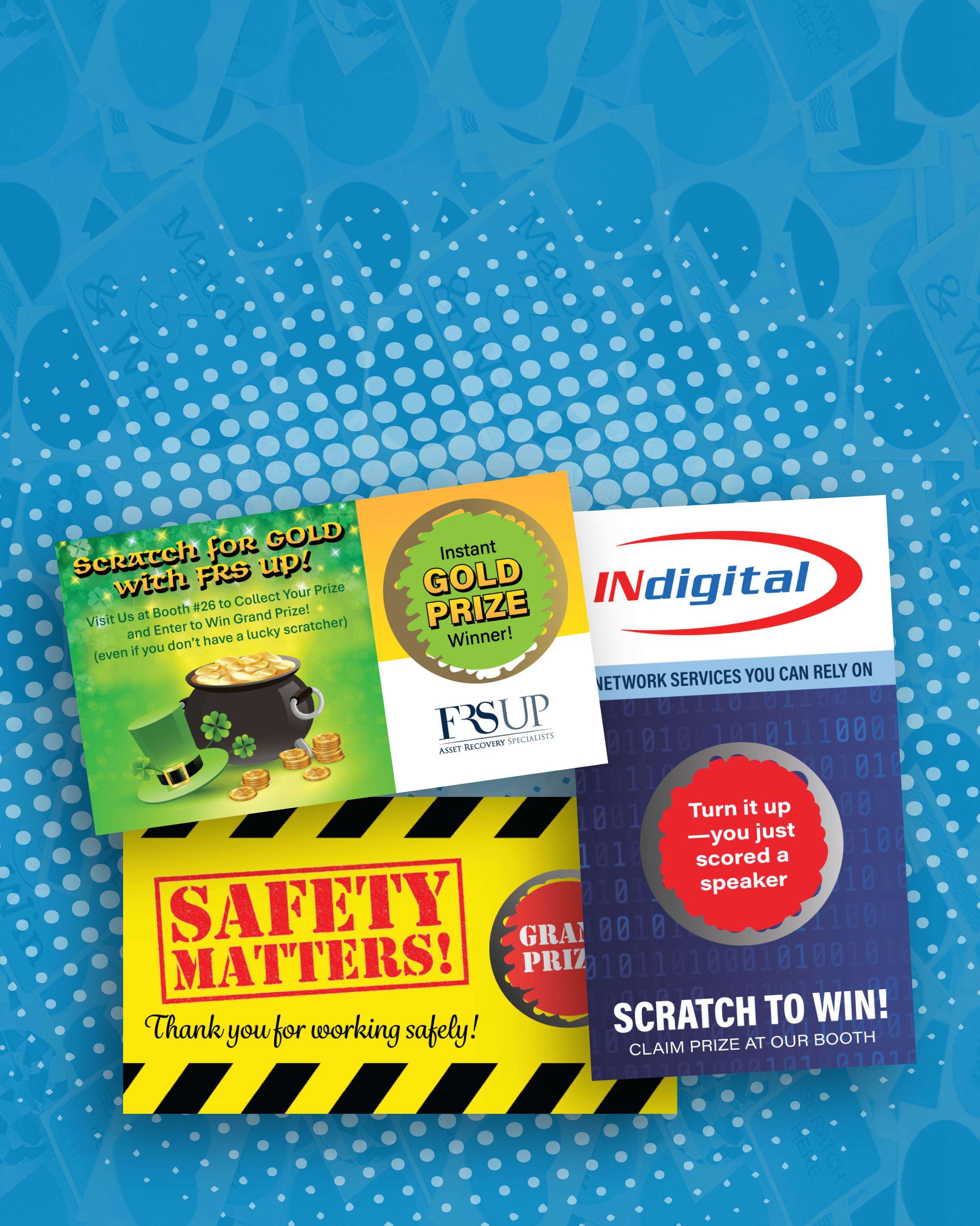 A Variation is anything that differs on the card.  For Scratch Off Cards, it’s what is printed underneath the scratch off area.  This includes any non-winning cards if you have those.  You can have as many or as few of each variation as needed!  For example, if your cards have a “Grand Prize,” you’d only need 1 card.  That’s totally fine!  If you need more Variations than what is listed, contact us and we can quote it out.