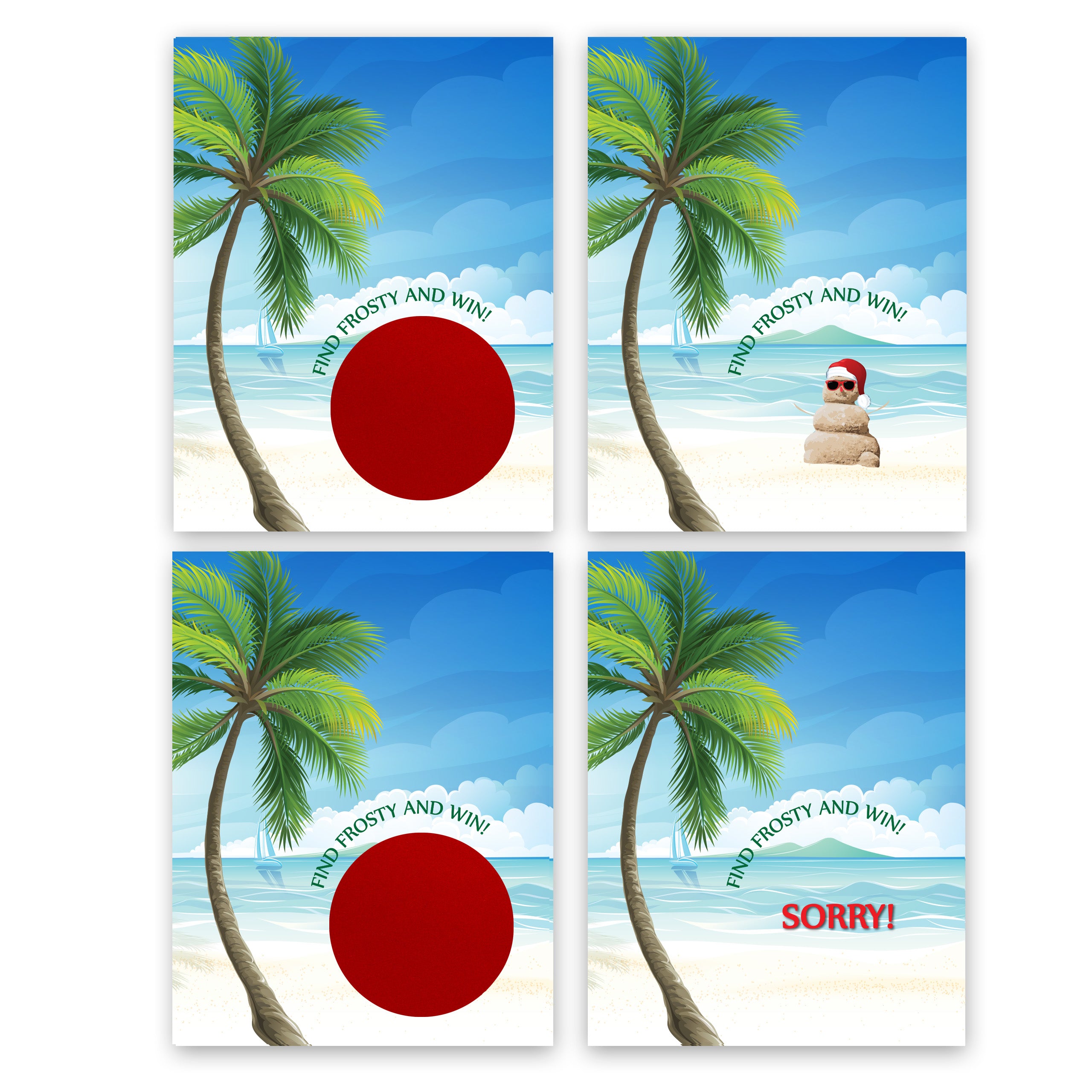 Introducing the "Find Frosty and Win" Scratch Off Game - a pack of 26 cards with a Christmas in July design that will surely get you in the spirit.
