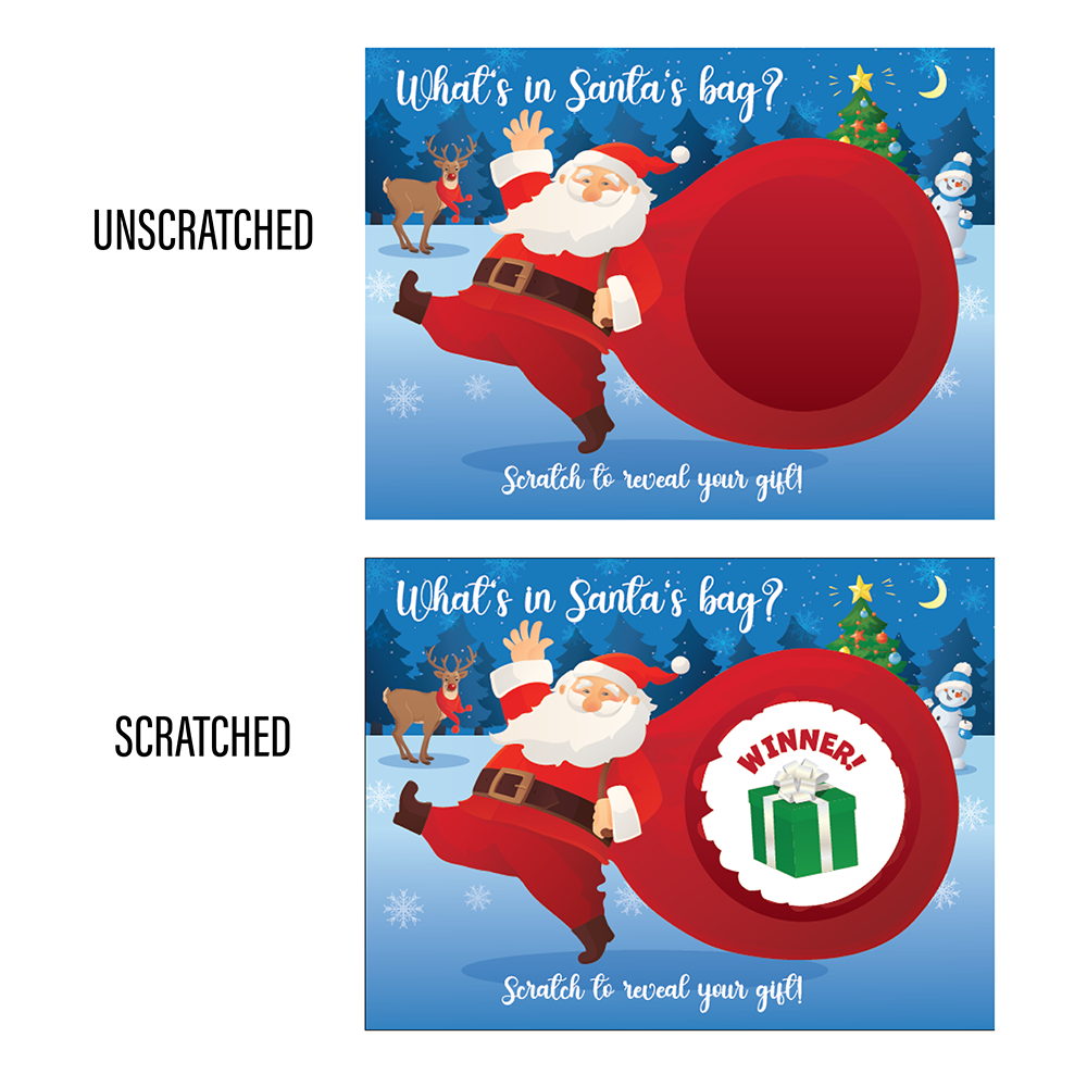 Introducing the What's in Santa's Bag Christmas Scratch Off Game Cards!