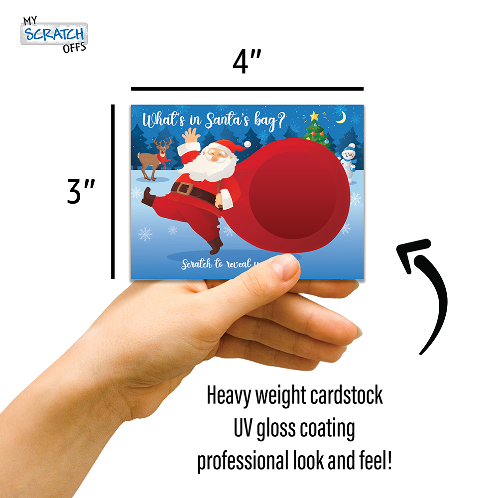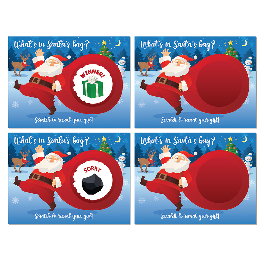 Get ready to sleigh the holiday season with the What's in Santa's Bag Christmas Scratch Off Game Cards. Don't let this opportunity slip through your mittens – order yours now and experience the magic firsthand. Can you resist the allure of scratching off that shiny surface to reveal your fate?